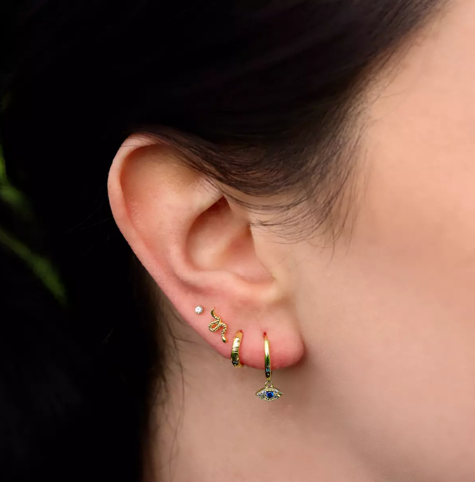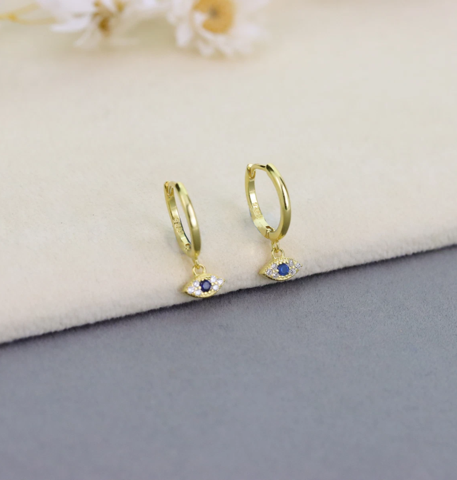 EVIL EYE HUGGIE DANGLE CLICKER EARRINGS