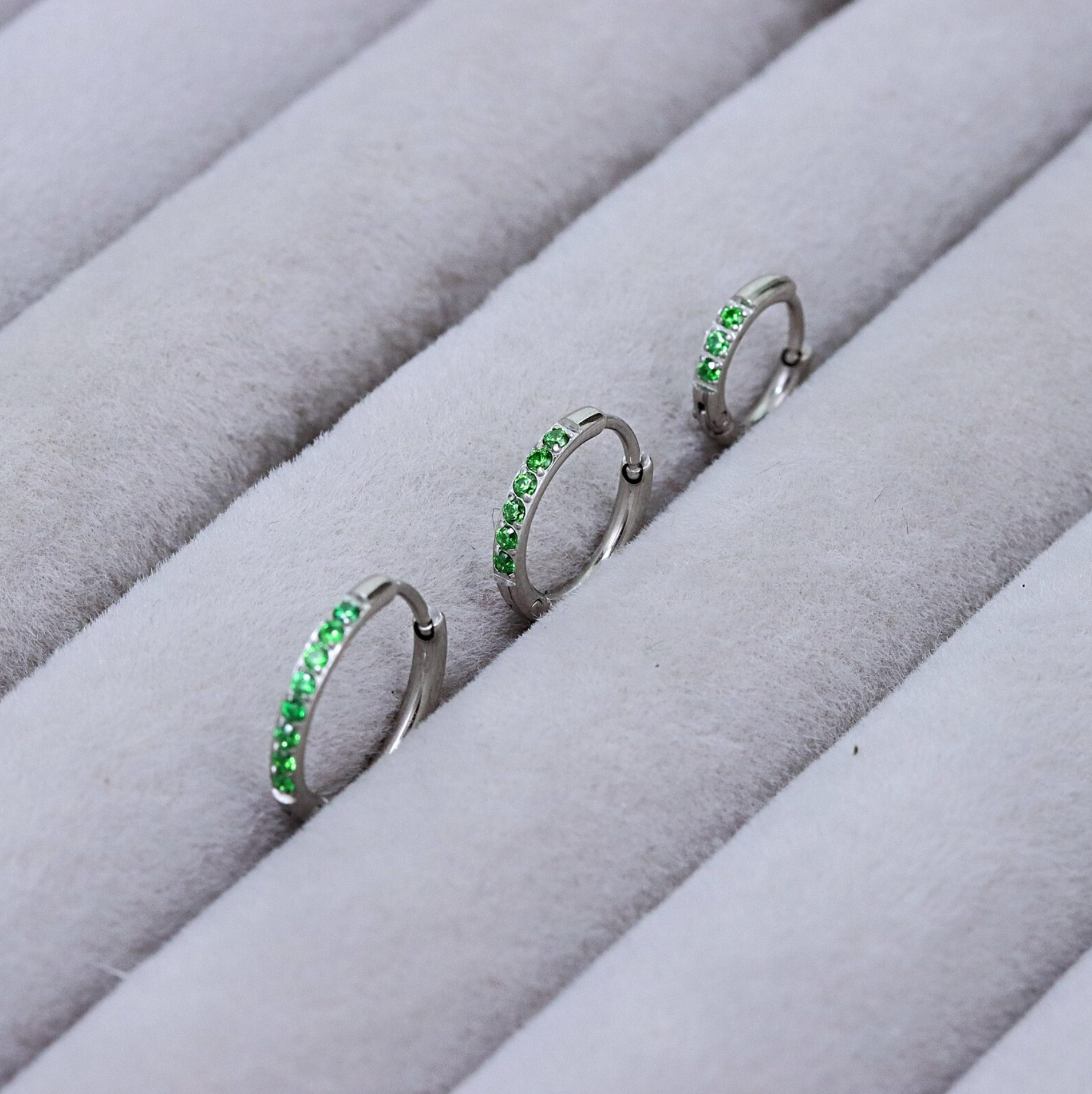 Green Gem Silver Huggie Earrings Crystal Womens Sleeper Hoop Stud Cuff Hoop Earrings