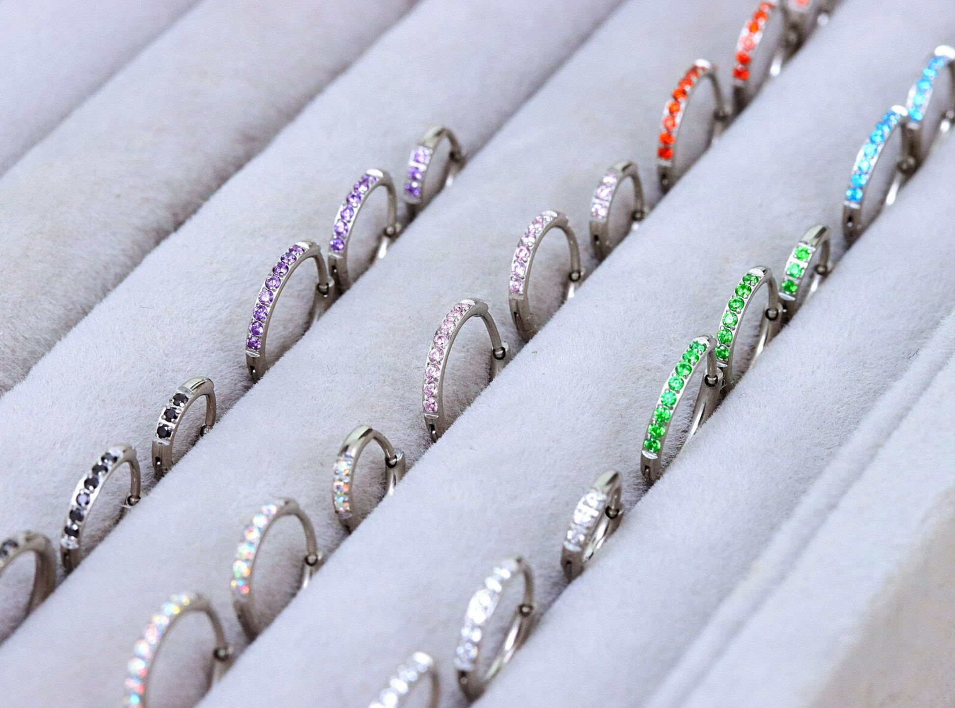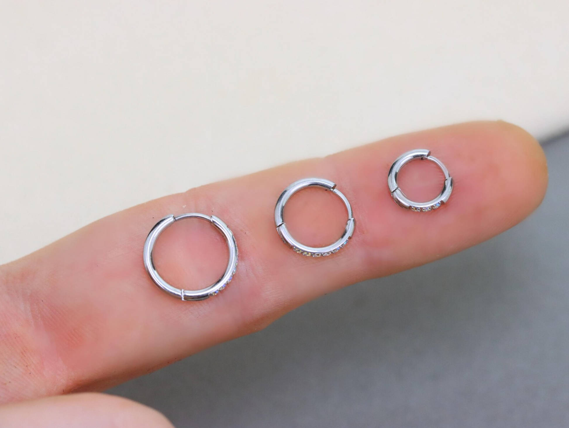 The best fit silver Crystal Huggie Earrings Women Gold Sleeper Hoop Stud Cuff Hoop Earrings, Septum Ring piercing, Septum Jewellery and Nose Jewellery, Suitable for septum, helix, nipple, lip, eyebrow where gauge allows.