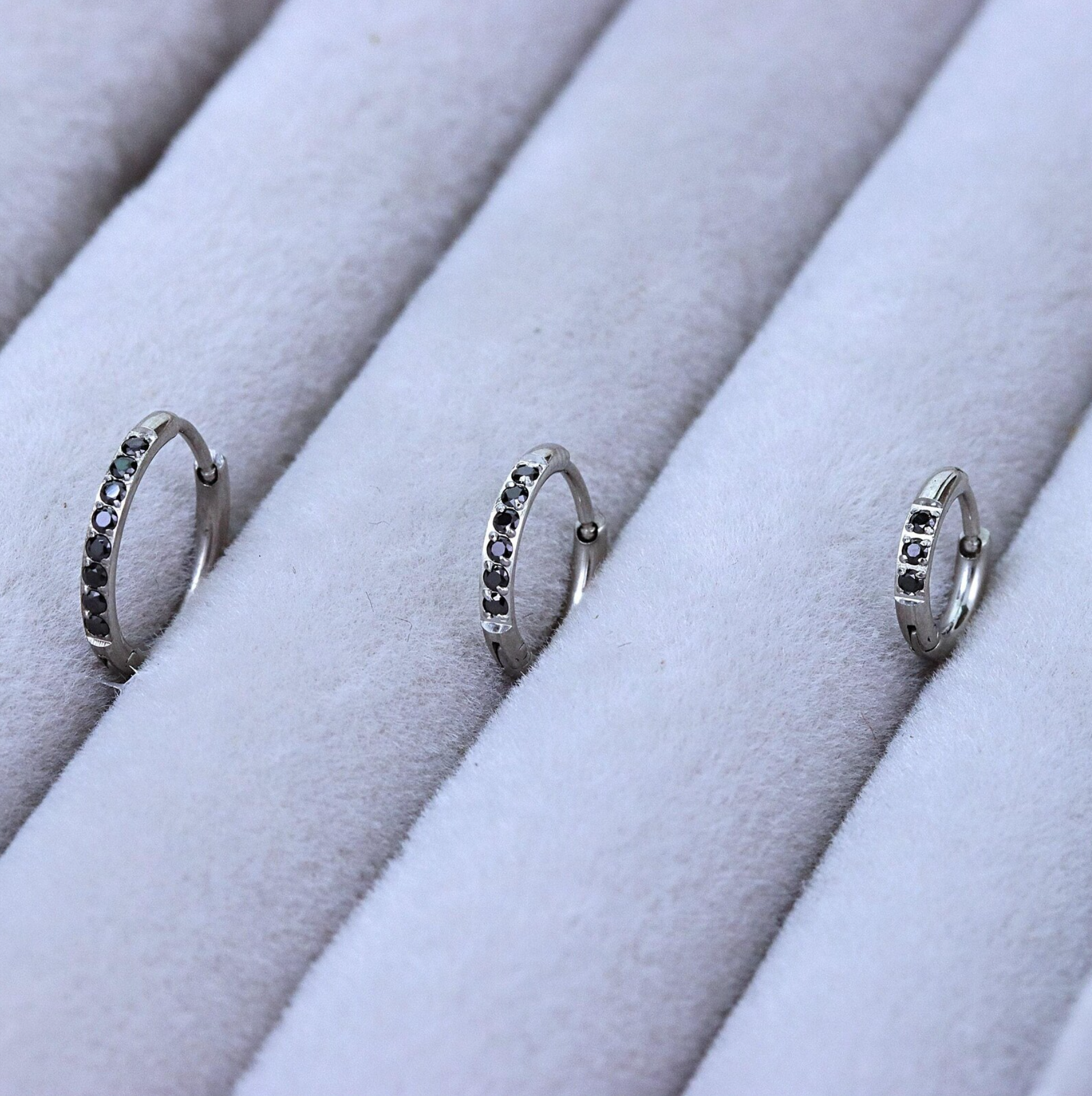BLACK CZ CRYSTAL GEM SILVER HUGGIE EARRINGS