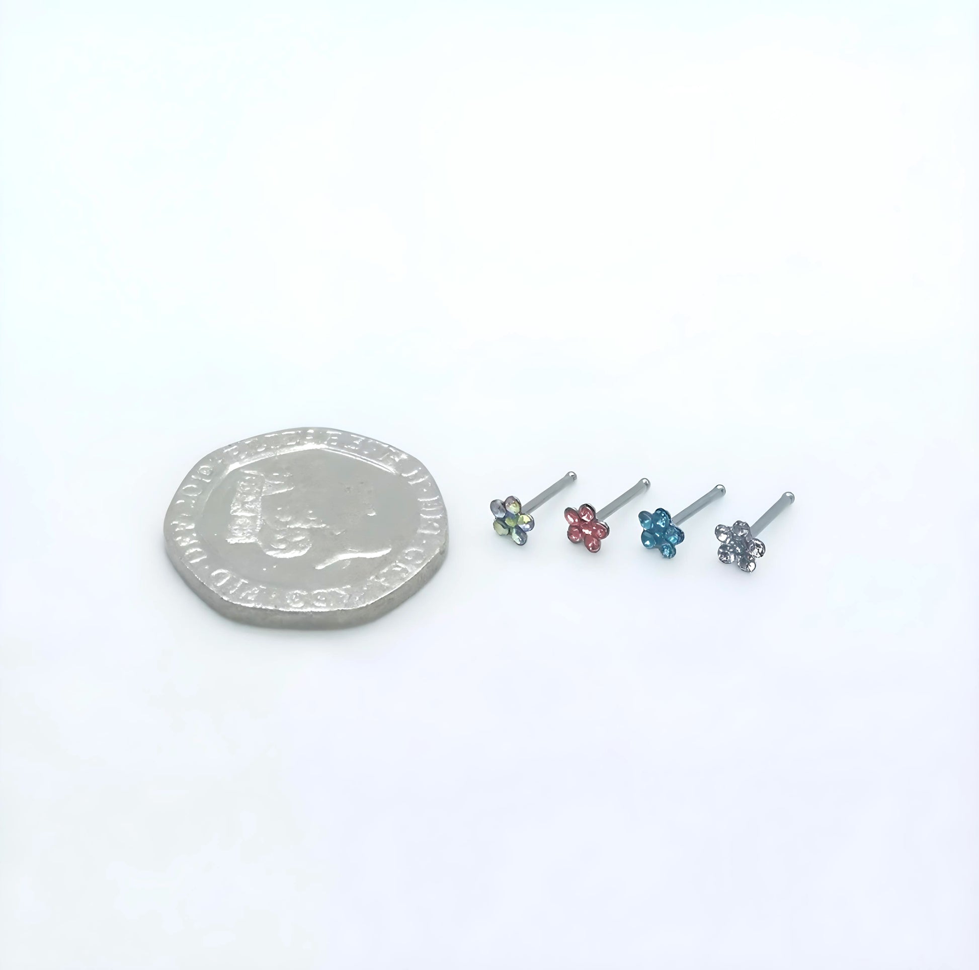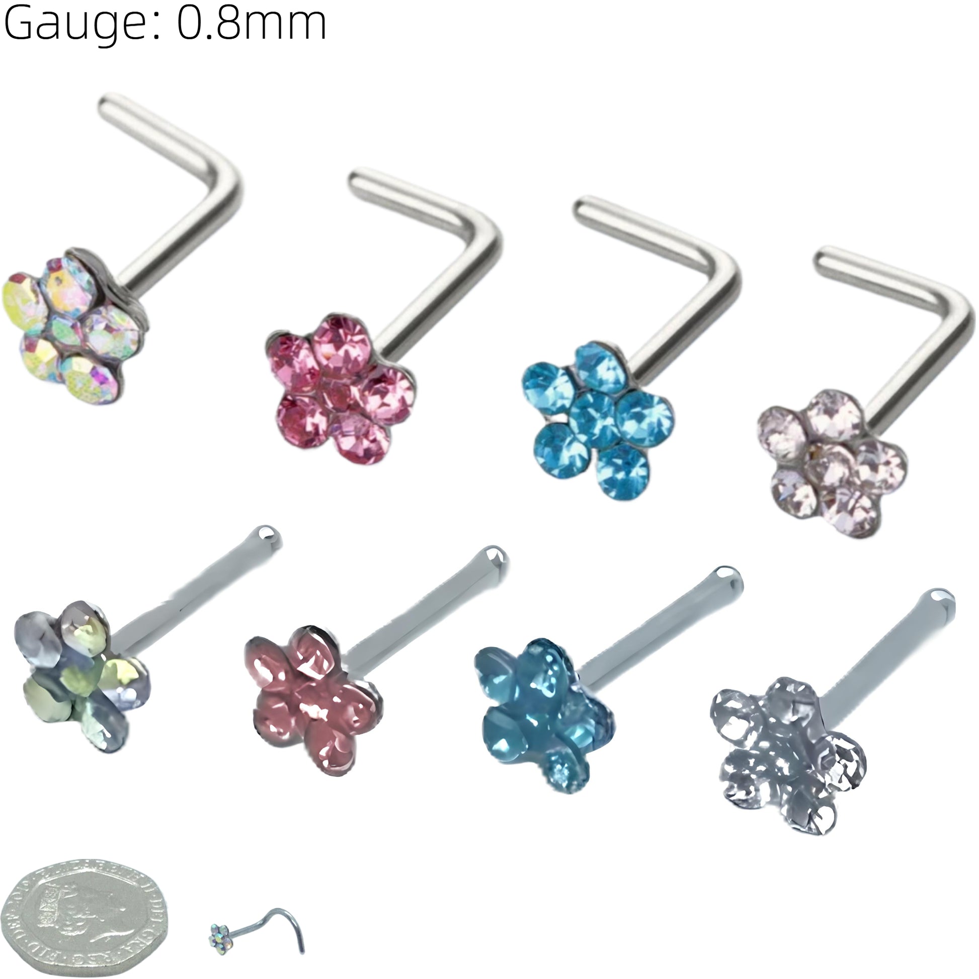 Flower Gem Straight Nose Stud Surgical Steel Ring Hoop Pin Piercing Bone End Screw Lshape