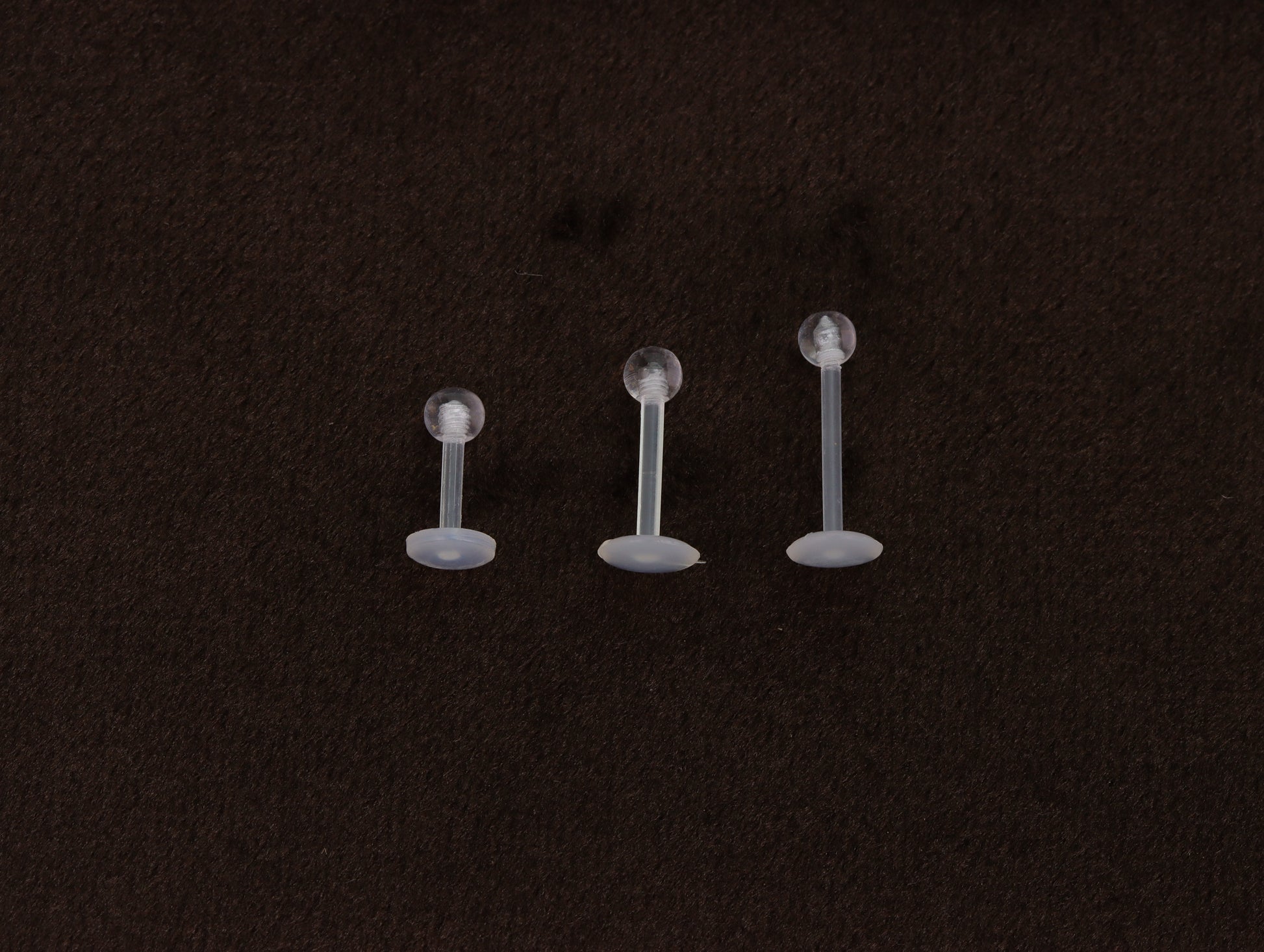 EXTERNALLY THREADED, SCREW ON BALL STUD, CLEAR RETAINERS , HIDE IT PIERCINGS FOR MEDICAL OR DISCREET PIERCINGS