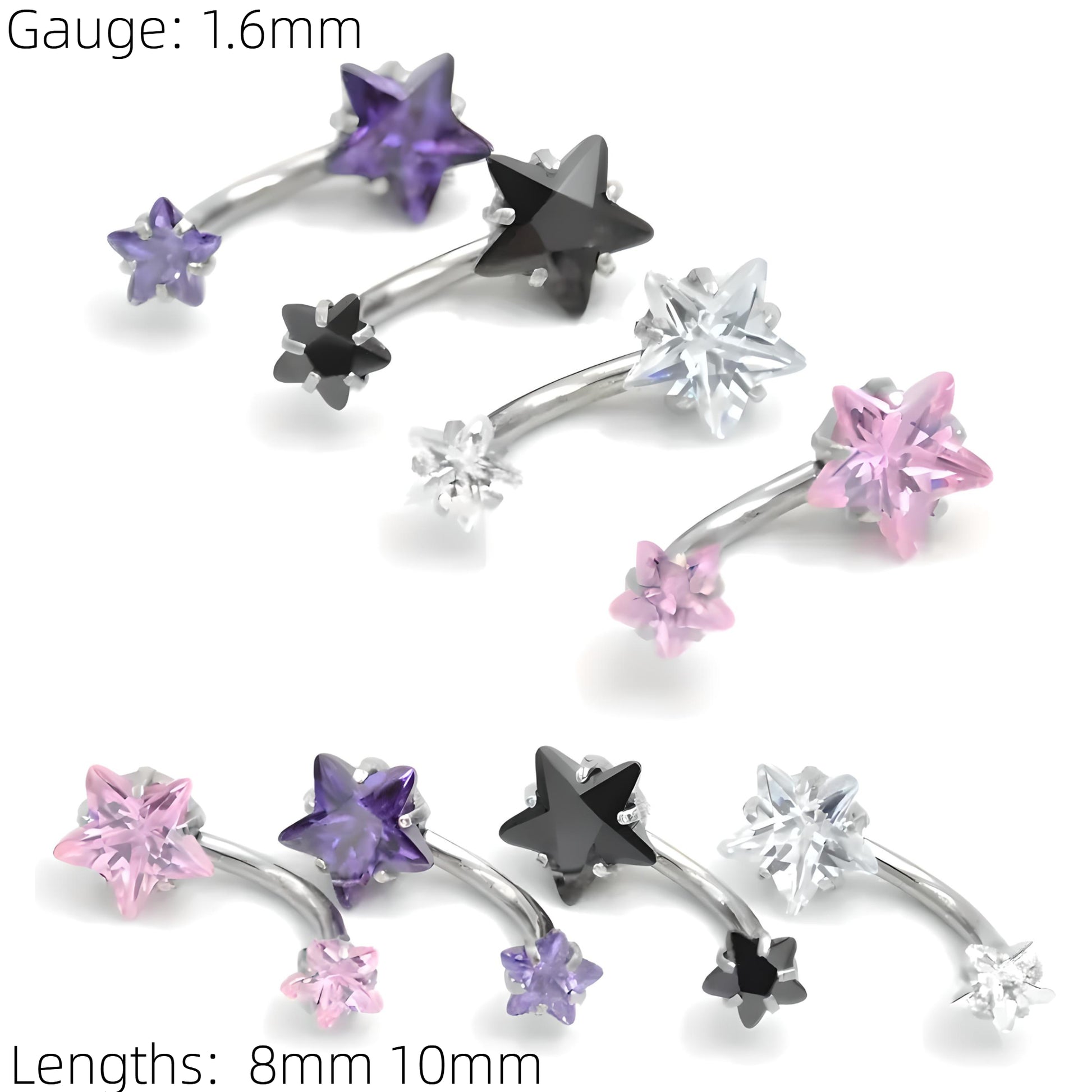 Star Belly Bar Navel Crystal Gem Monroe Labret Bars Tragus Piercing