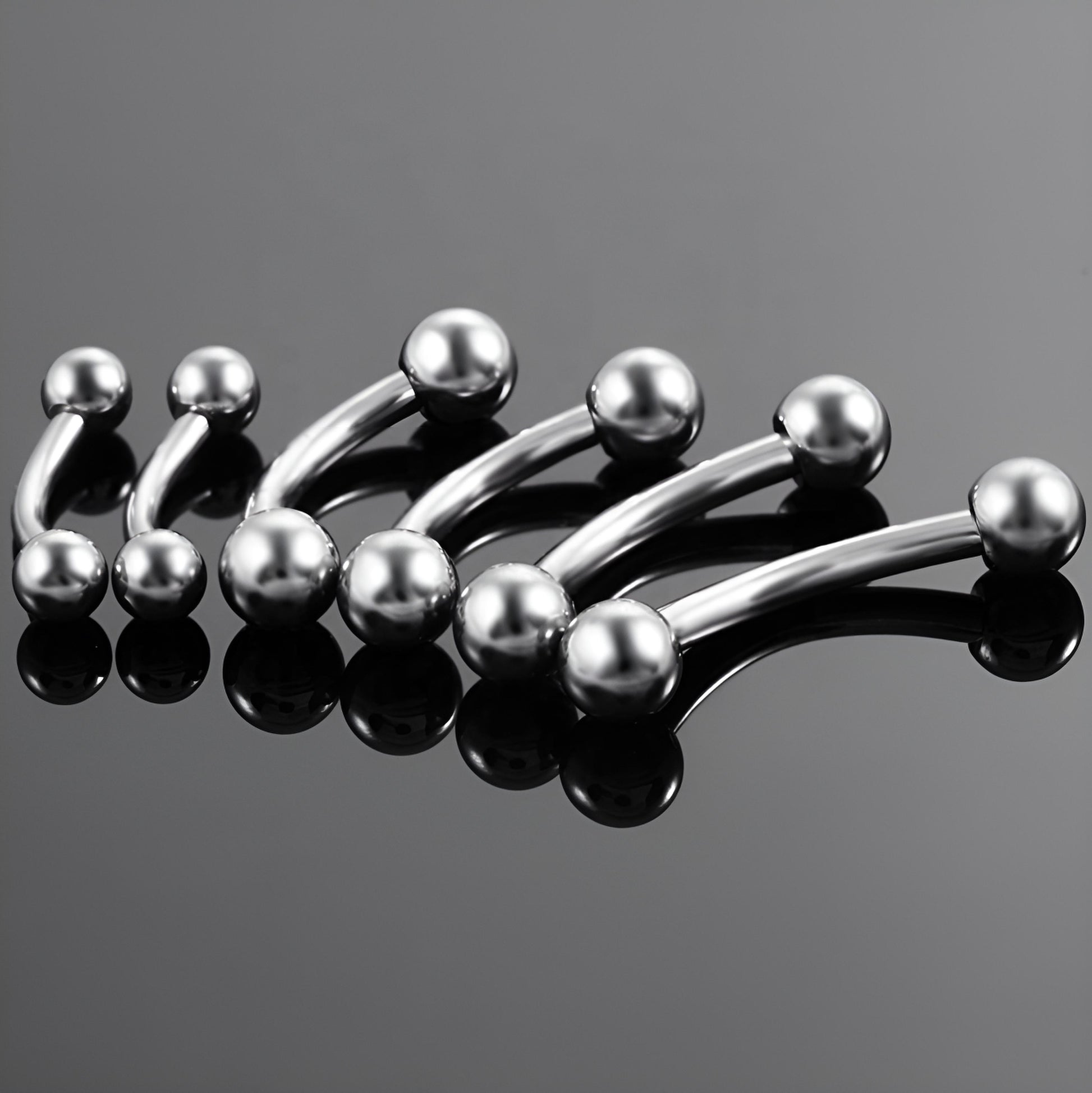 curved eyebrow barbell piercing made from 316L surgical steel, perfect for eyebrow, lip, belly button, navel, tragus, helix, rook, and cartilage piercings. This banana barbell design is hypoallergenic, durable, and comfortable for everyday wear, making it a versatile choice for both men and women.